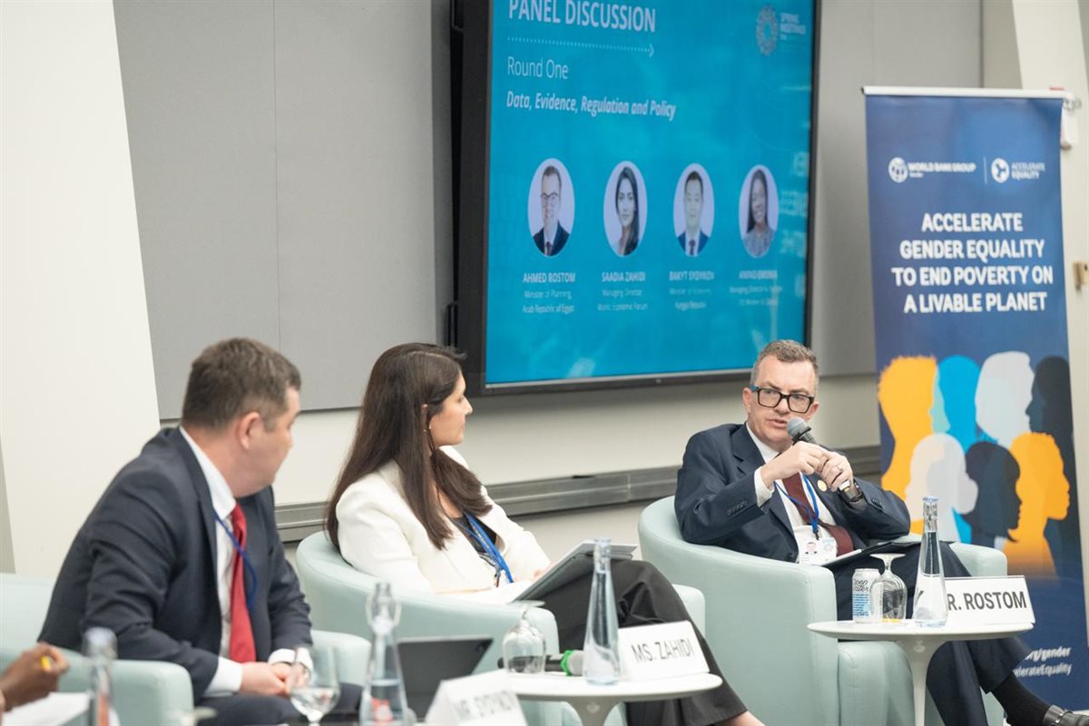 شارك الدكتور أحمد رستم، وزير التخطيط والتنمية الاقتصادية، في جلسة حوارية رفيعة المستوى بعنوان "العائد الاقتصادي لتمكين المرأة"، وذلك ضمن فعاليات اجتماعات الربيع لصندوق النقد والبنك الدوليين المنعقدة بالعاصمة الأمريكية واشنطن، بمشاركة عدد من كبار المسؤولين والخبراء الدوليين في مجالات الاقتصاد والتنمية.