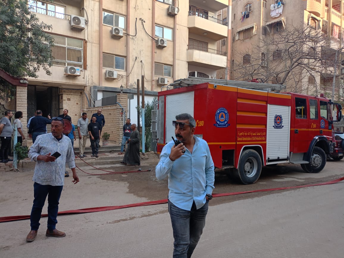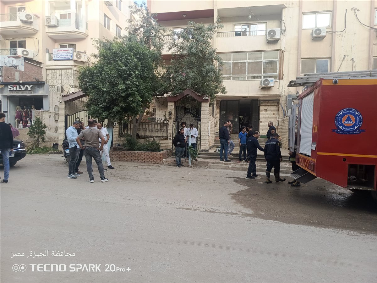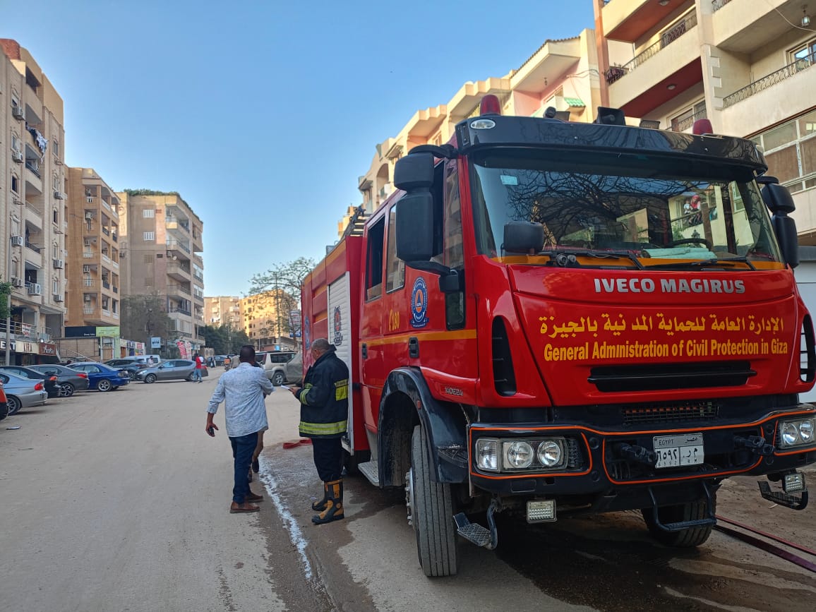 بالصور.. السيطرة على الحريق نشب داخل غرفة حارس عقار بهضبة الأهرام