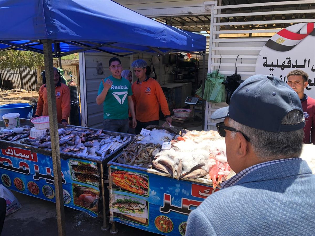 وتفقد محافظ الدقهلية منفذ بيع الأسماك، واللحوم مشددا على النظافة العامة للمكان، كما تفقد محل بيع الخضروات والفاكهة مؤكدا على الالتزام بالأسعار المخفضة وجودة المعروضات والالتزام بالأسعار المعلنة، كما تفقد محل بيع البيض الأبيض والأحمر.