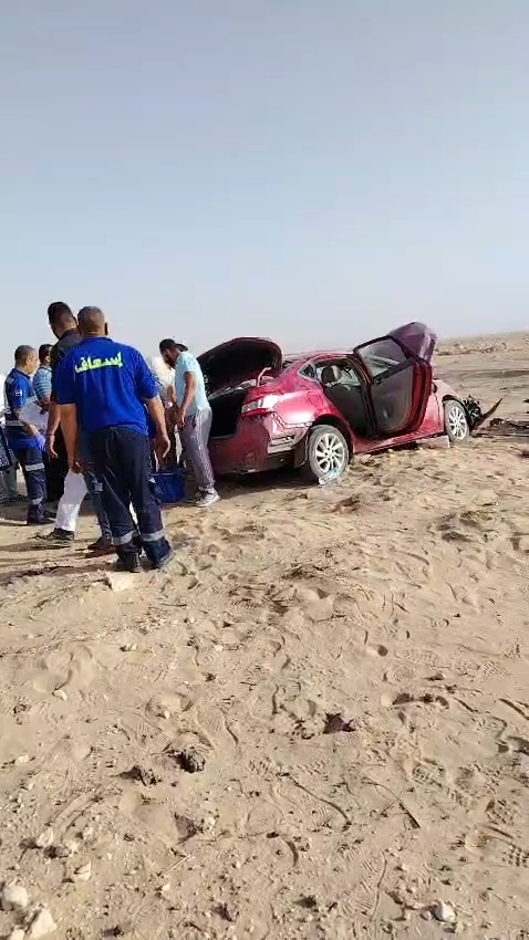 إصابة سيدة وسائق في حادث انقلاب سيارة ملاكي على صحراوي قنا