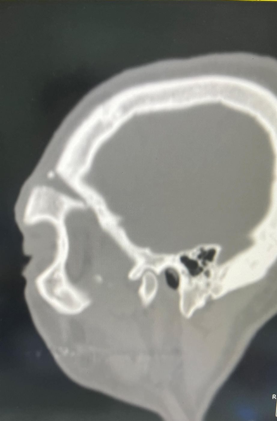وخلال عملية استمرت نحو 9 ساعات متواصلة، تم تنفيذ تدخل جراحي متكامل شمل استخدام مدخل جراحي تجميلي (Bicoronal Approach) لإتاحة رؤية جراحية واسعة مع الحفاظ على الشكل الجمالي، إلى جانب التعامل مع قاعدة الجمجمة وإجراء Cranization للجيب الجبهي، بما يضمن حماية المخ.