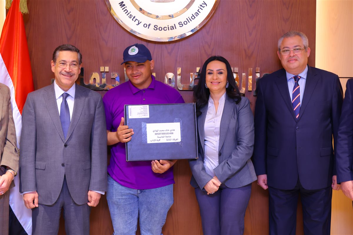 وشهدت الفعاليات توزيع 150 جهاز لاب توب ناطق مخصص للطلاب من ذوي الإعاقة البصرية، إلى جانب 25 كرسيًا متحركًا كهربائيًا للطلاب من ذوي الإعاقة الحركية، في خطوة تستهدف تعزيز فرص التعليم وتيسير العملية التعليمية داخل الحرم الجامعي.